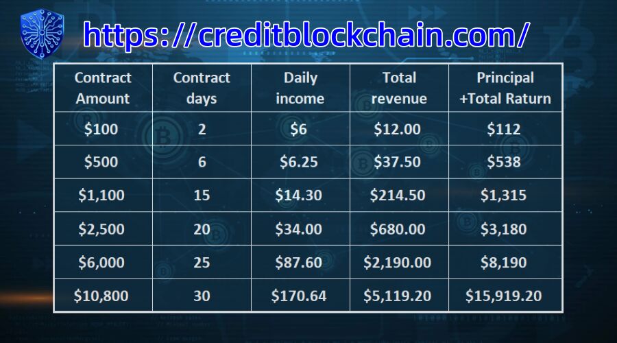 CreditBlockchain is a mobile-based cloud mining application. Users simply need to install the app on their smartphones, register an account, and choose a suitable mining plan to start earning rewards. CreditBlockchain’s core advantage lies in its “cloud” feature: it runs mining rigs on behalf of users in remote data centers, handling transaction verification and block generation on the blockchain network, while users simply monitor and collect their daily earnings through the application.