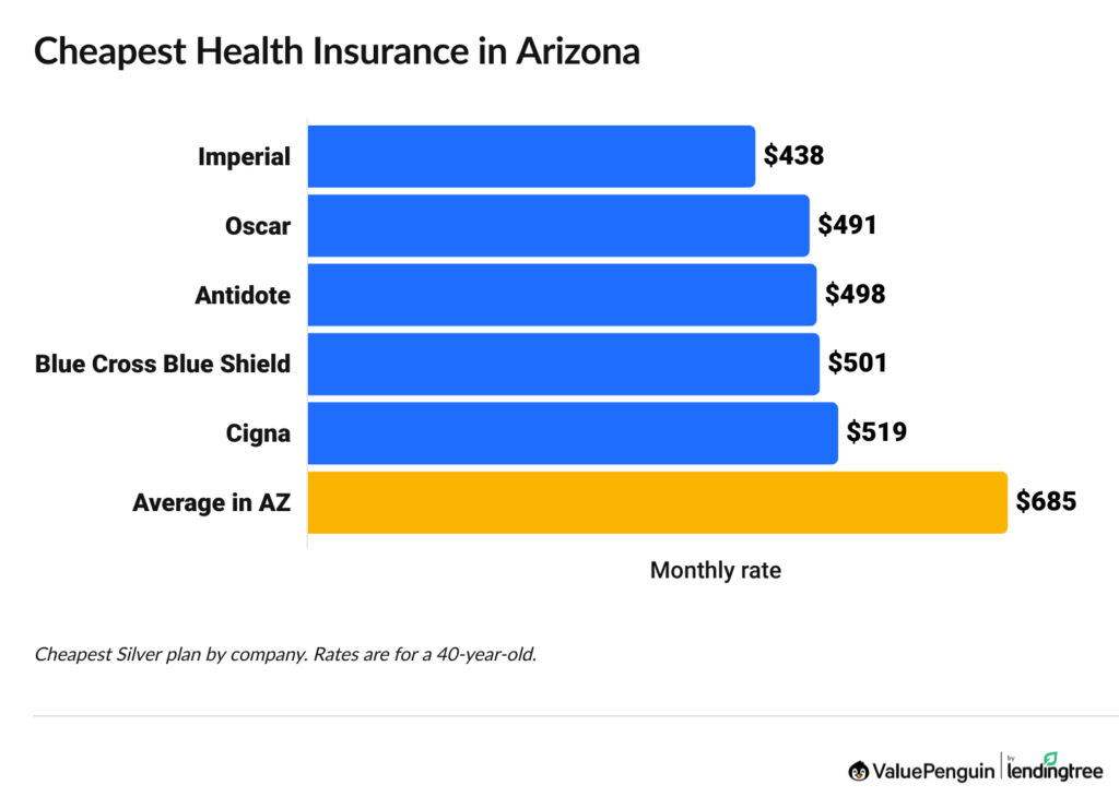 Imperial, Oscar and Antidote have the cheapest health insurance in AZ, with Silver plans starting at $438 per month before discounts, called subsidies.