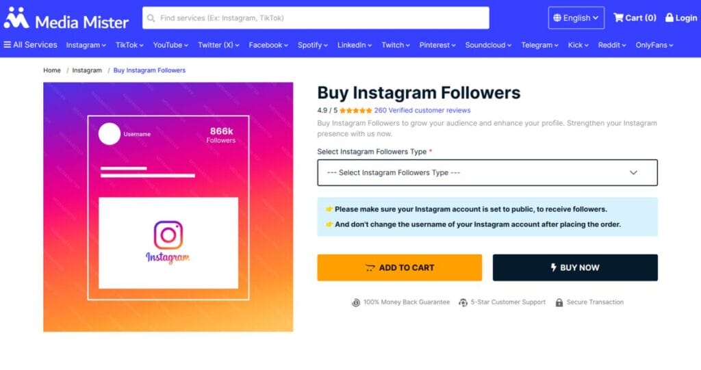 Choose Media Mister to buy Instagram followers for steady results backed by a 60-day retention warranty and a 30-day refund policy.