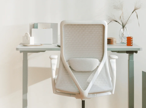 This Branch office setup epitomizes modern minimalism. The signature ergonomic chair, shown in white with its supportive mesh back, pairs flawlessly with the clean lines of the matching standing desk. The light, airy color scheme fosters a sense of calm and focus, perfect for a stylish and productive home office.