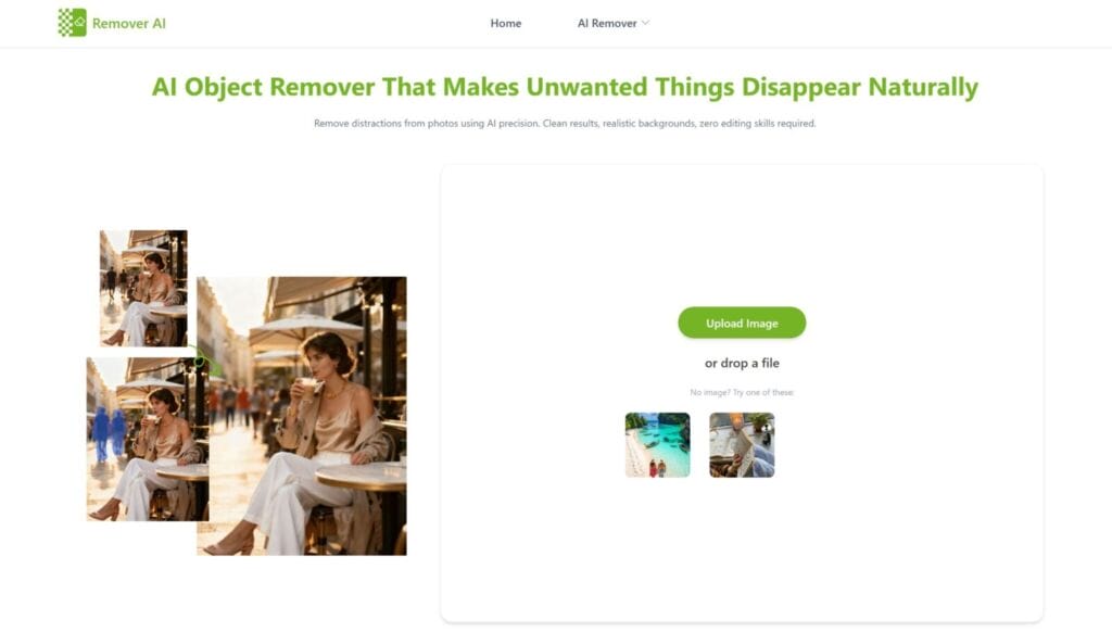 RemoverAI allows users to remove unwanted objects instantly without any editing skills.