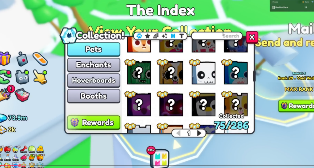 Pet Simulator 99 is mainly about collecting pets to grow your coin-earning power. Huge pets stand at the top of the rarity hierarchy. These companions dwarf your character in size and deliver more coins than standard pets.