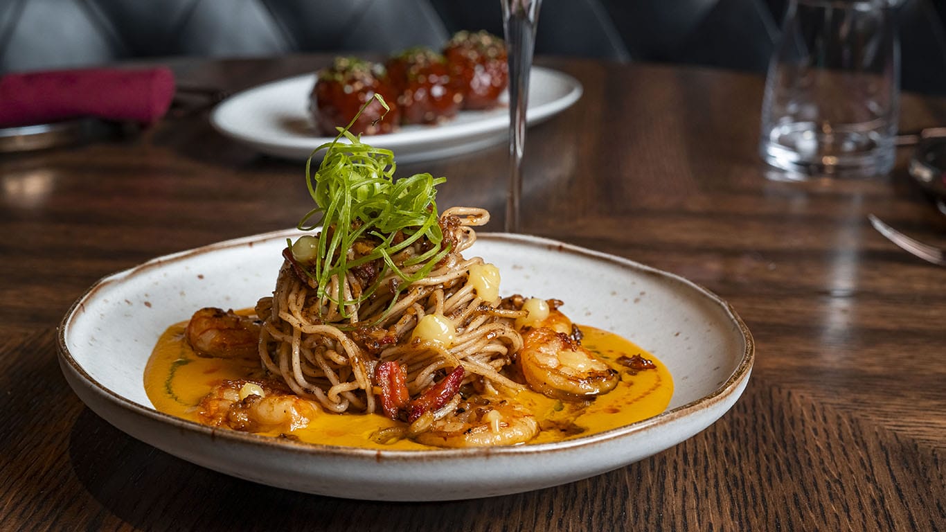 Memorable mains include Wagyu Filet and Ribeye Cap, King Crab and Shrimp Creamy Pasta, Wagyu Dragon Beef, Lobster Garlic Noodles, Hokkaido Scallops and Tiger Shrimp, and Vegan Butternut Squash Wok-Fired Noodles.
