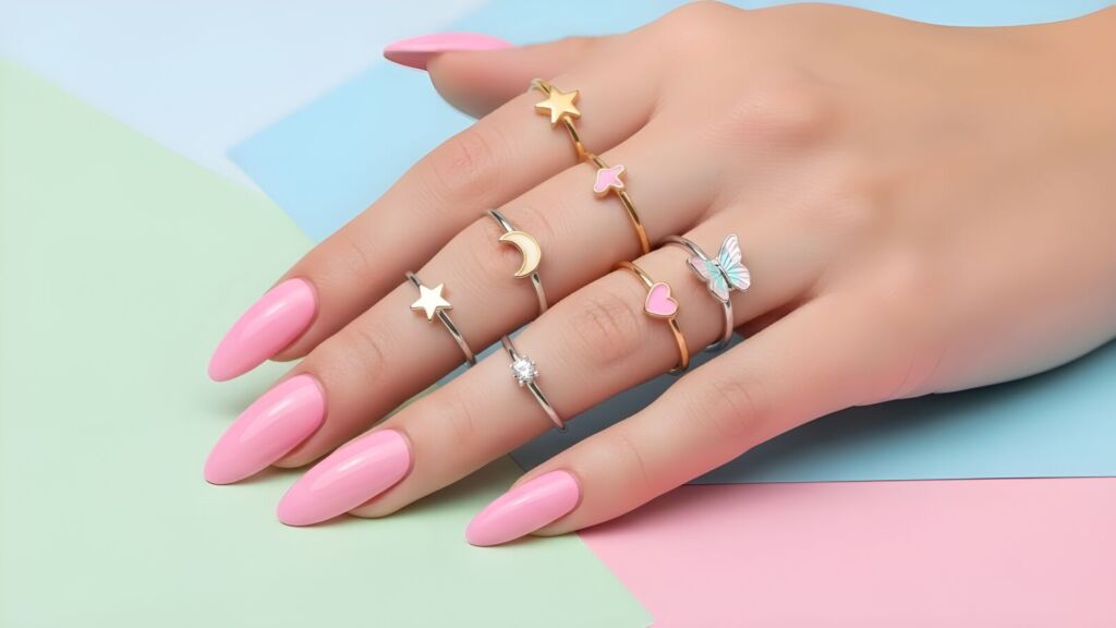 - Combine with gemstone rings for contrast