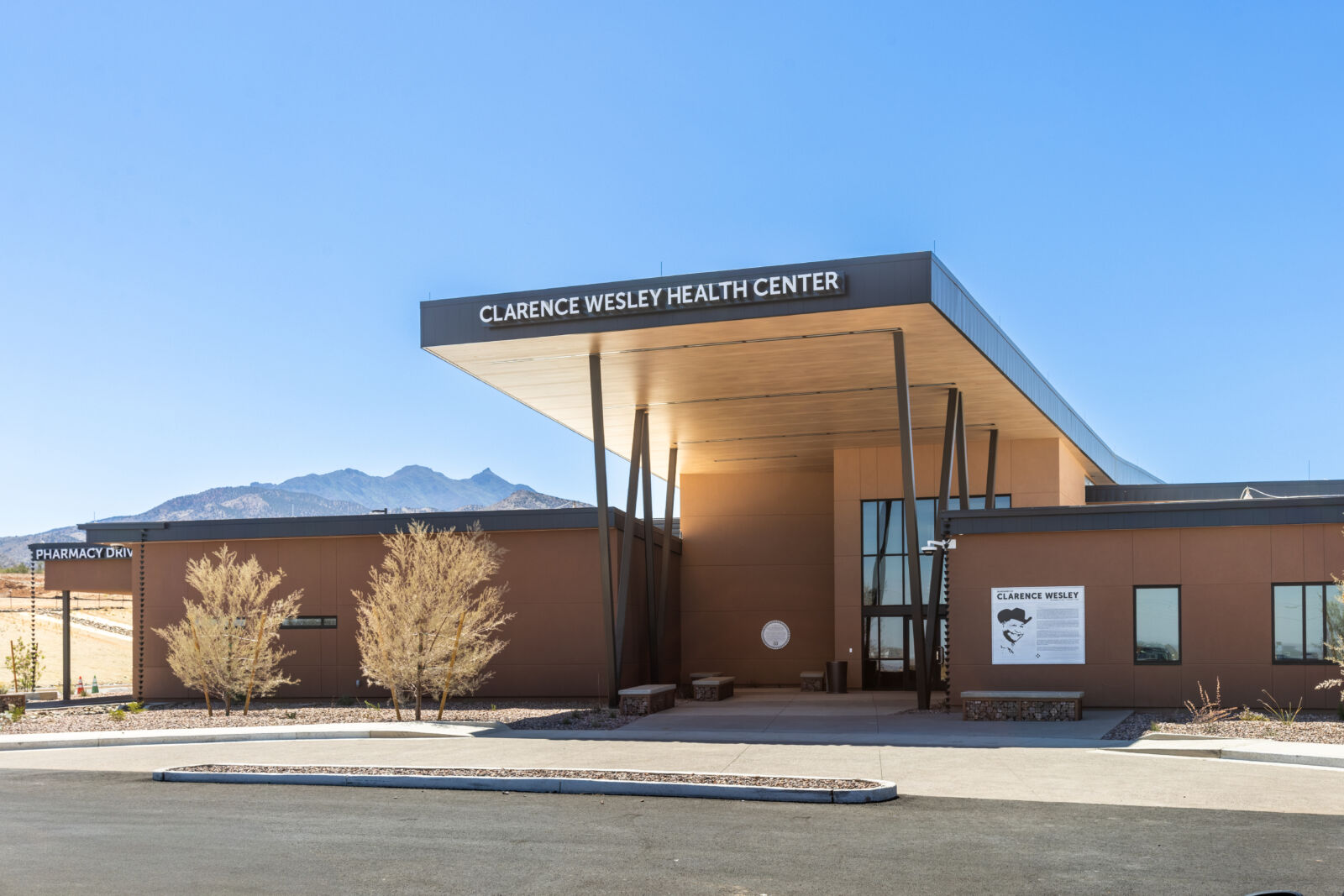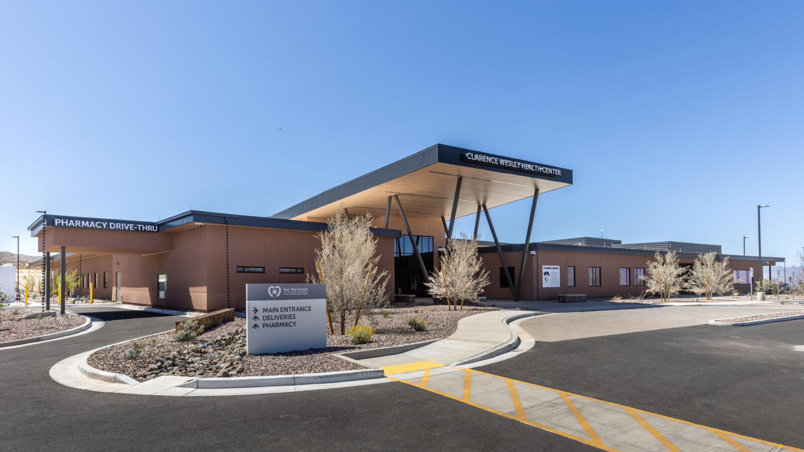 The Clarence Wesley Health Center (CWHC) is a 34,000-square-foot modern healthcare facility located approximately five miles south of Bylas, in the shadow of sacred Mount Turnbull. This state-of-the-art center replaces an older, smaller facility that had been damaged by shifting soils, providing the San Carlos Apache community with a modern medical hub.