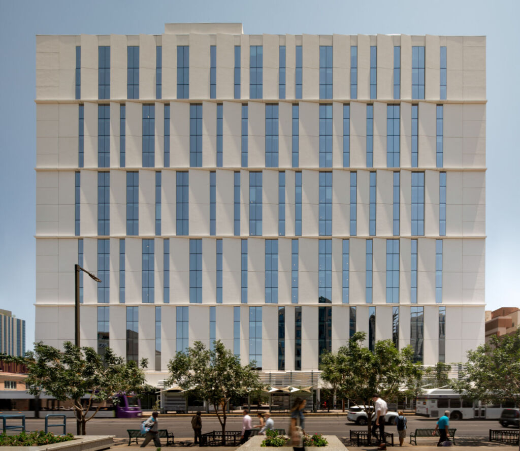 Located in the Roosevelt Row Arts District, Saiya spans approximately 605,000 square feet spread across a 23-story tower, 6-story tower and a single-story historic courtyard building. The project delivers 389 residential units, with ground-floor commercial and restaurant space. The redevelopment approaches the infill site with a permeable concept. At the pedestrian level, a paseo weaves through and connects the vibrant commercial corridor to the adjacent well-established residential neighborhood. The public alley was reimagined and incorporated into the project and enhances walkability and urban connectivity, with a primary entrance into the residential lobby and commercial uses.