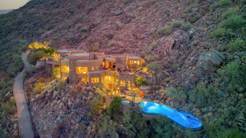 Iconic Camelback Mountain estate: Perched on the slopes of the iconic Camelback Mountain, this extraordinary 23.66-acre estate represents one of the last and most significant buildable properties on the mountain. Offering more than 180 degrees of sweeping valley views—with Camelback’s dramatic cliffs rising behind—the property is known throughout the community as the celebrated ”Merry Christmas House. ” Cherished by the same family for decades, it now awaits its next remarkable chapter. The existing 4,661-square-foot residence, originally built in the 1950s, reflects the timeless influence of Frank Lloyd Wright. Organic architecture, expansive glass walls, stone accents, and a seamless blend of indoor and outdoor living create a tranquil private sanctuary that feels both grounded in the landscape and elevated above the city lights. Beyond its architectural legacy, the property’s 23.66 acres offer exceptional potential for future development, including the opportunity to subdivide into up to four parcels. Whether envisioning a family compound, multiple luxury estates, or reimagining the existing residence, the possibilities are unparalleled. Conceptual floorplan and site plan designs by renowned architect Mark Candelaria are also available to inspire your vision. Privately gated and surrounded by natural desert beauty, this estate combines unmatched privacy, panoramic vistas, and rare development flexibility all just minutes from the heart of the city. Whether preserved, expanded, or completely transformed, this is a truly once-in-a-lifetime chance to own a piece of Arizona history on one of its most iconic mountain peaks.