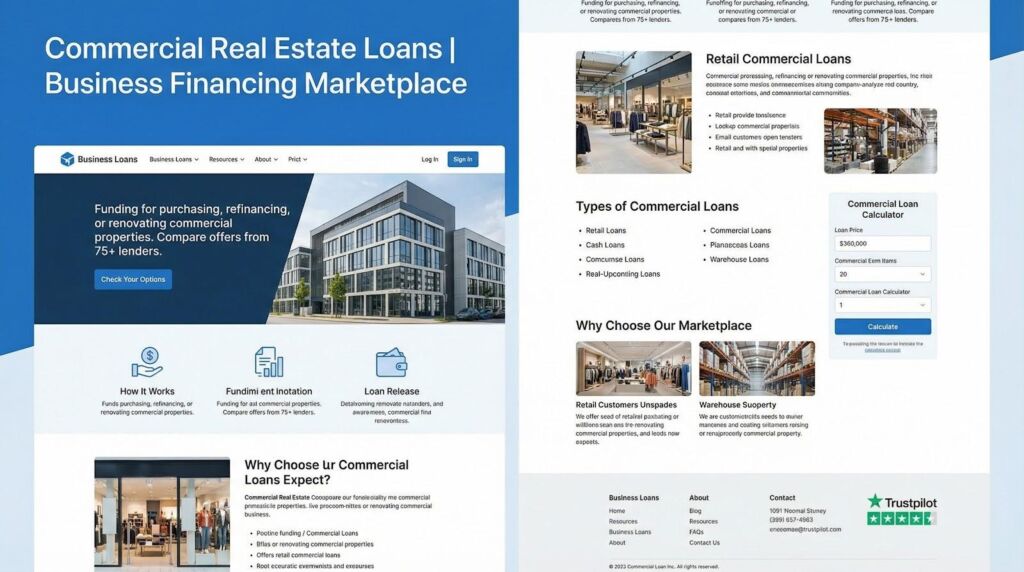 An online loan marketplace lets you submit one application and receive offers from many lenders. The largest platform, Lendio, routes your file to more than 75 funding sources and was named best overall for commercial real estate options by Fit Small Business.