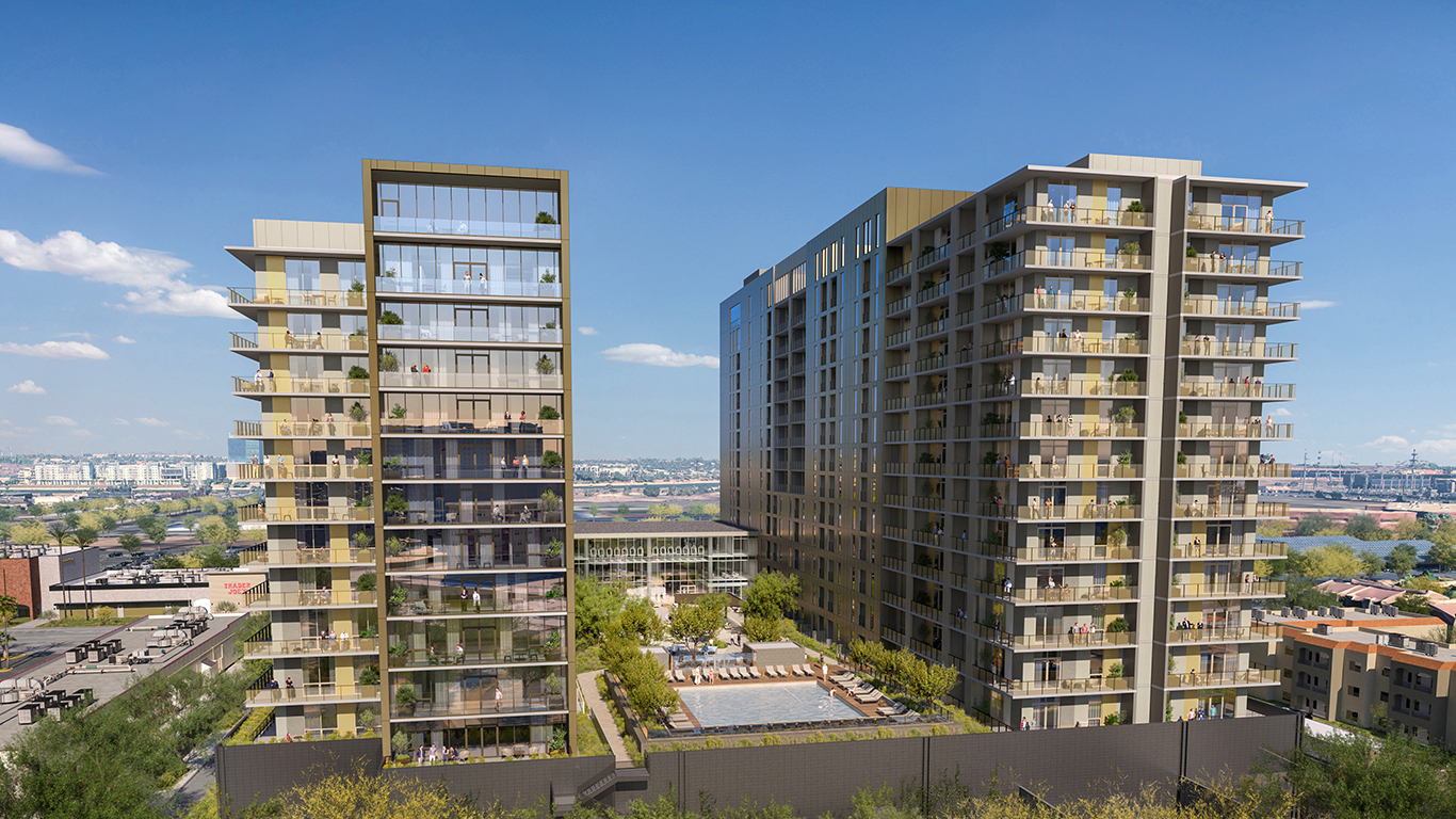 Revelry reflects Aspirant Development’s focus on design-forward high-rise communities that elevate the resident experience, while contributing thoughtfully to the urban fabric. Situated in the heart of Tempe near University Drive, Mill Avenue, downtown Tempe, and light rail routes, Revelry is surrounded by a highly educated, youthful, and affluent population. Within a five-mile radius, the area is home to more than 350,000 residents, more than 314,000 daytime employees, and average household incomes exceeding $100,000, reinforcing the site’s long-term demand for both luxury residential living and complementary street-level retail.