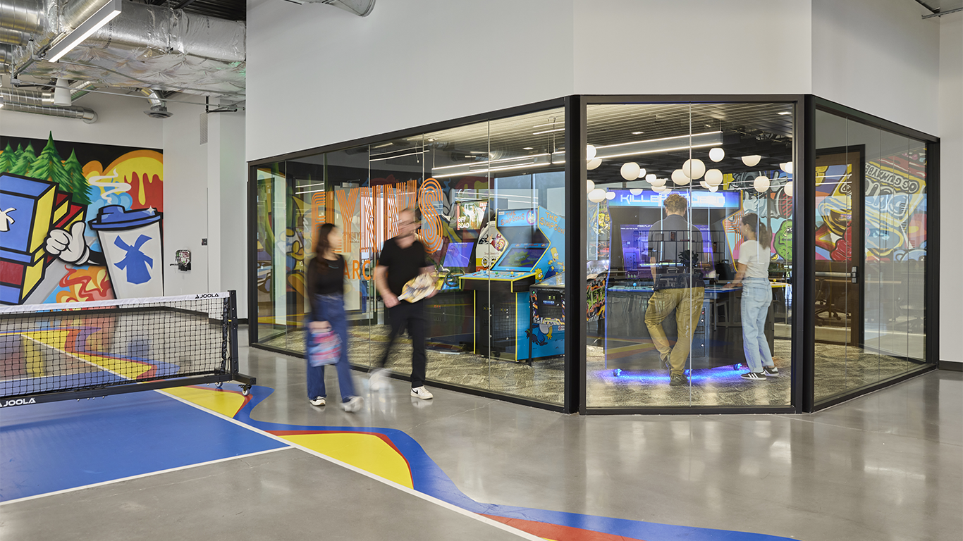 “If someone is feeling sociable, they can go sit in an open collaborative area. Maybe the next day, they’re stressed or need to really focus, which are what the quiet rooms are for,” Justice says. “People love making choices, and it gives them a stake in how they’re using the space.”