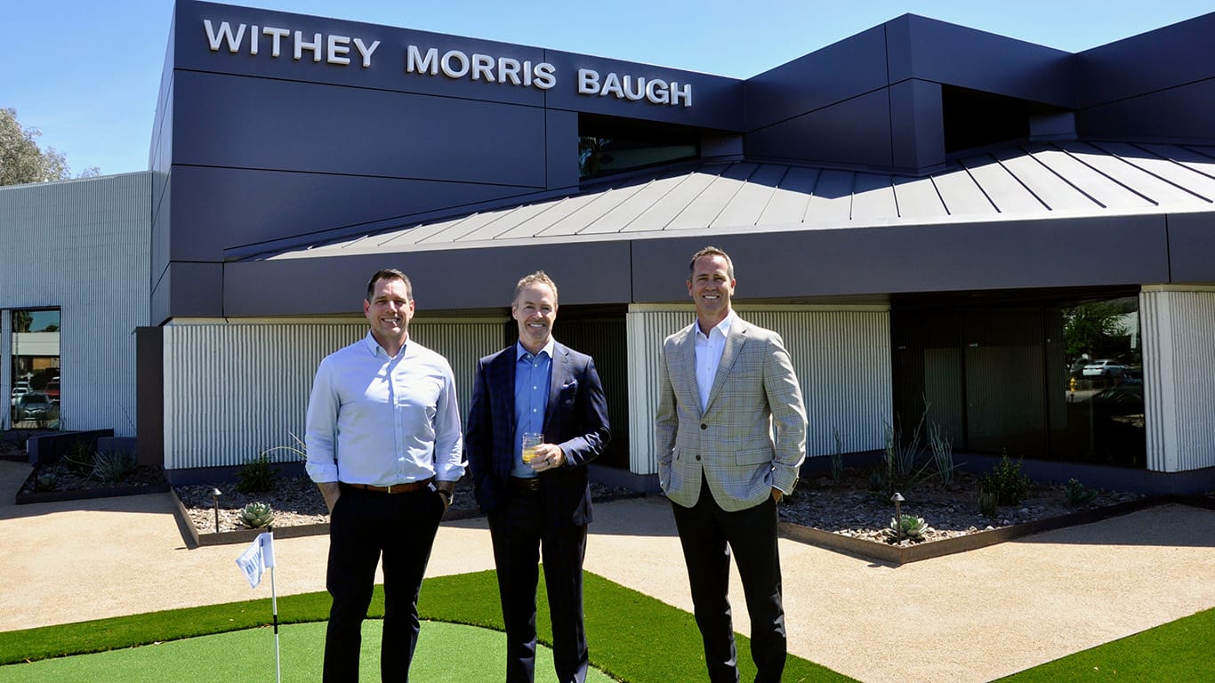 Leading Arizona land use and zoning law firm Withey Morris Baugh is showcasing its newly finished Biltmore-area office, a well-executed adaptive reuse of the former Half Moon Windy City Sports Grill on Highland Avenue. The firm paid homage to the building’s libacous past, while reimagining the building into client-ready meeting spaces, collaborative zones and employee amenities that raise the bar on today’s modern office. The project reflects an elevated approach to repositioning an existing structure—retaining key architectural elements while aligning the building with premium office standards and employee amenity areas.
